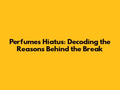 Perfume's Hiatus: The Real Reasons Explained